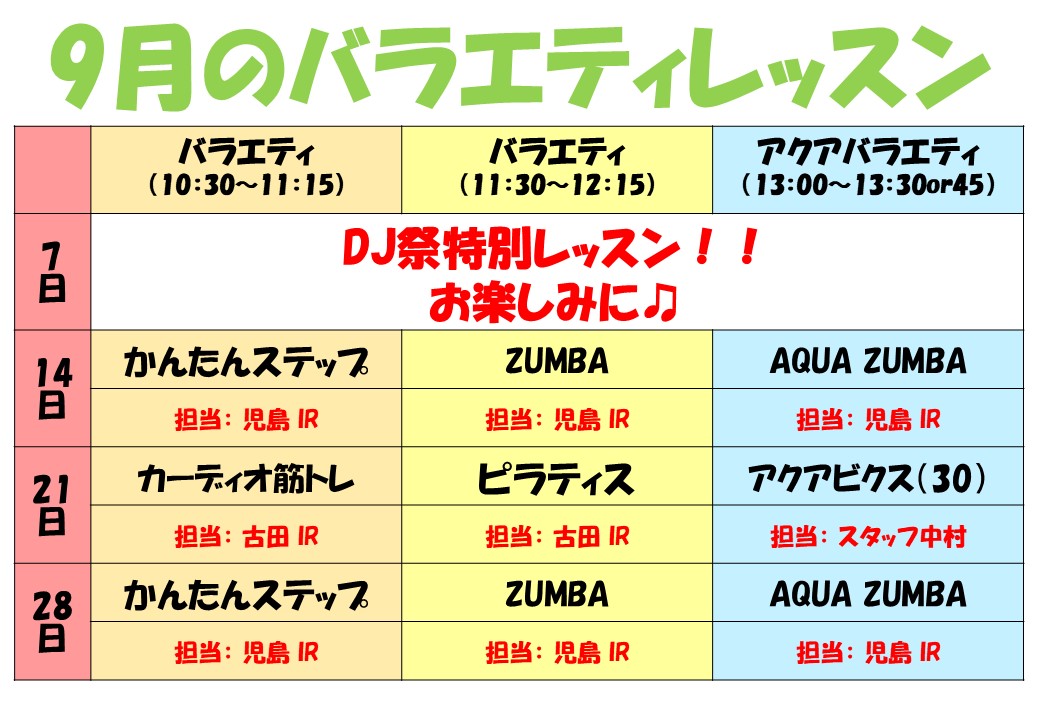 この度、9月のバラエティレッスンのご案内をさせていただきます。
