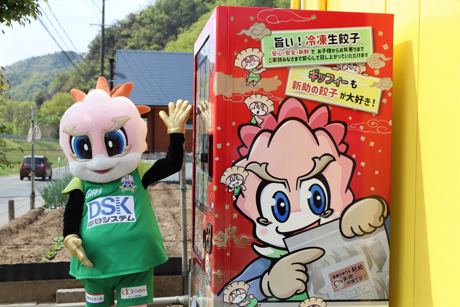 新助餃子 開店4周年!FC岐阜応援 冷凍生餃子自販機設置しました♪