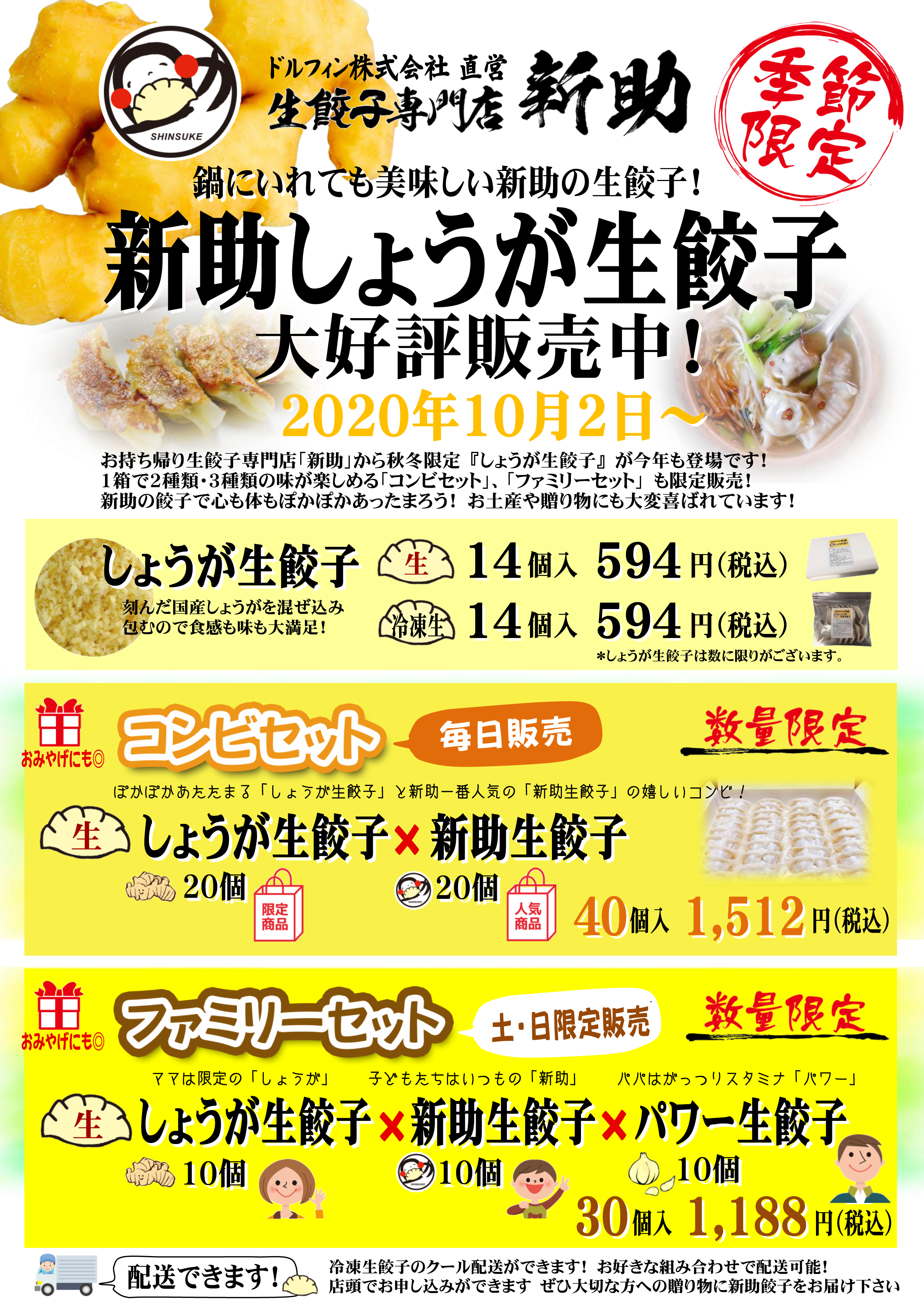 生餃子専門店「新助」季節限定!!しょうが生餃子大好評販売中!