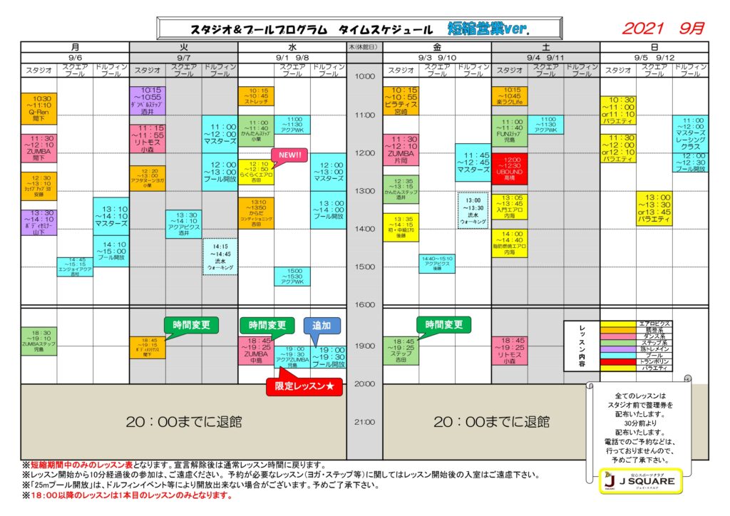 3.時間短縮営業期間中のスタジオレッスンについて