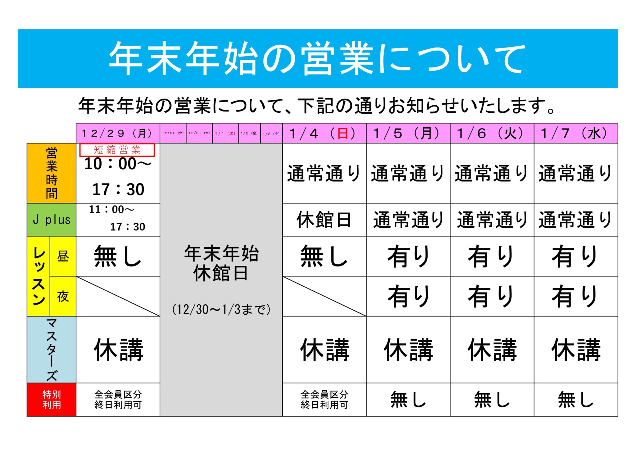 ■7月19日(金) 18:20~18:50 ドルフィンスイミングスクールスタジオ(隣接建物)