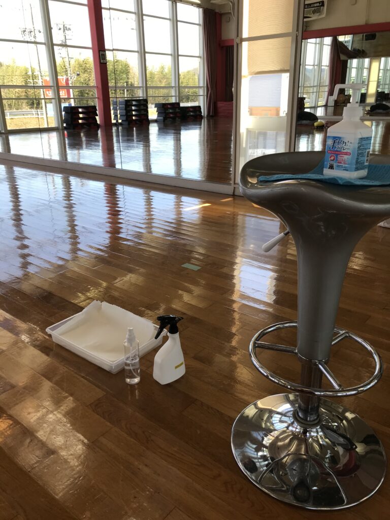 スタジオレッスン後は、使用した道具すべてを除菌し、接触感染を防いでいます。